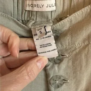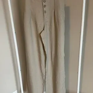 Stylish beige chinos with button accents. Perfect for versatile wear. Good condition linen blend flowy pants, see pictures. Great for summer