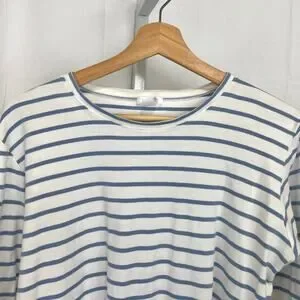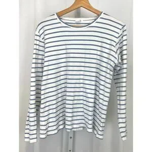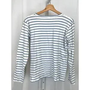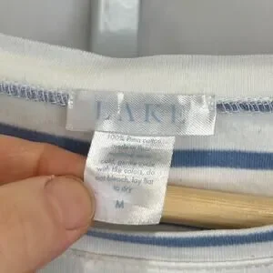 LAKE Striped Pajama Top Crew Neck Long Sleeve Pima Cotton Blue White Size M