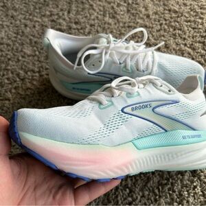 Brooks Glycerin GTS 22 Womens 8.5 B Running Shoes White/LimpetShell/Blue Sneaker