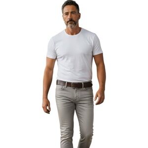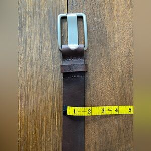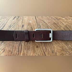 Elegant brown belt with a polished silver buckle. Ideal for versatile styling.