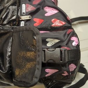 LeSportsac Black Backpack with Red, Pink, White Hearts