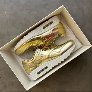 Gently worn Nike WMNS Air Max 1 SP sneakers in Liquid Gold.