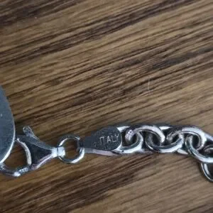 Elegant silver bracelet with a heart charm. Perfect for any occasion.