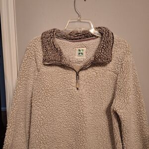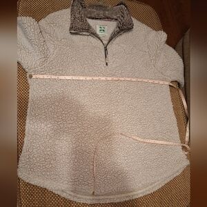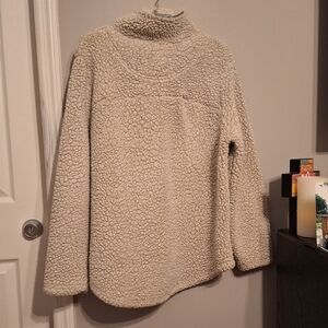 Stay warm and stylish with this cozy cream Green Tea sherpa pullover shacket jacket. Perfect for chilly days, this jacket offers comfort and style. Great for layering. Casual, hiking, walking, jogging, leisure, workout.