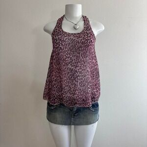 pink and grey leopard print cami from the pretty little liars aeropostale collection. sheer mesh with racerback halter style.