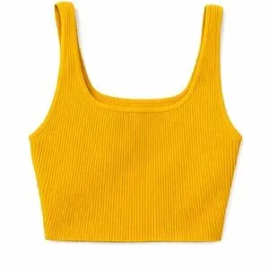 Vibrant yellow ribbed knit crop tank. Square neckline with wide straps. Soft, stretchy fabric for a comfortable fit. Stretchy Material, in good condition 99% Nylon 1% Elastan
