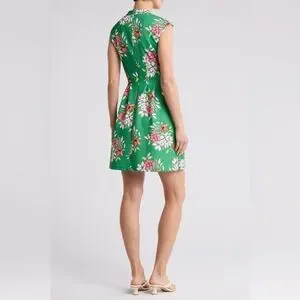 Vince Camuto Green Floral Scuba Knit Fit and Flare Dress Size 8