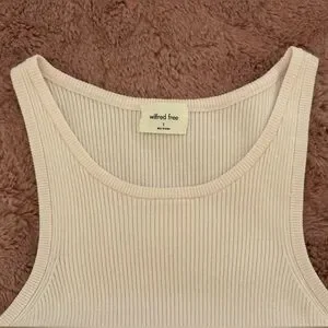 Wilfred by Aritzia sleeveless ribbed mini dress with a subtle front cutout. Soft pale pink knit offers a feminine look. Fitted silhouette flatters the waist. Simple design works for day or evening. Swipe to see it on!