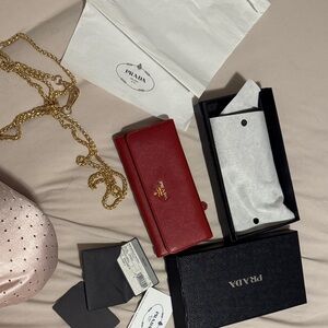 Authentic Prada Red Saffiano Leather Chain Wallet with chain box
