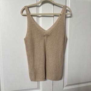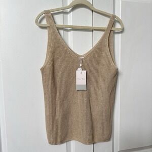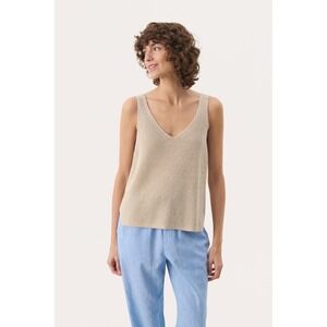 NWT Part Two Copenhagen Rebecca Knit Linen Tank Top Womens L Tan Boho Resortwear