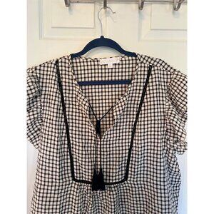 Weekend Suzanne Betro flutter Sleeve Gingham V-Neck blouse Size 4X