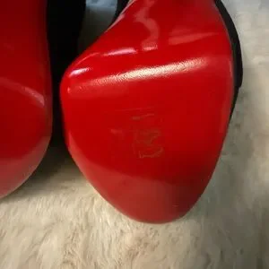 Excellent / like new condition. ( Missing two crystals, one on each shoe. Cannot see it. Minimal to no visible wear. Soles are very clean and vibrant. Crystals fully intact and shine beautifully. (See photos for full condition.)