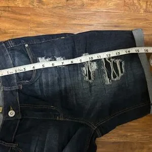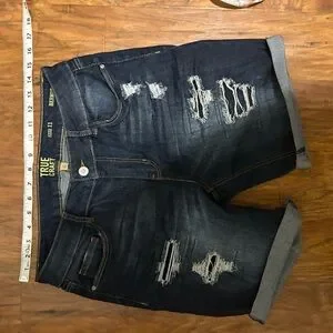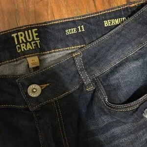 True Craft Dark Indigo Distressed Denim Bermuda Shorts Junior Size 11