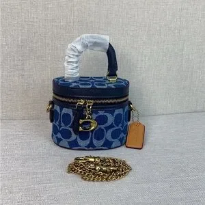 COACH Blue Denim Signature Mini Vanity Crossbody