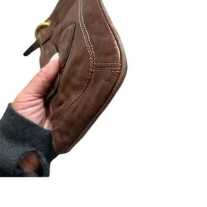 This sophisticated brown leather wristlet features a unique crown accent, perfect for elevating your style.