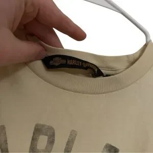 Harley Davidson beige graphic t-shirt in size 2XL Slim featuring the classic Harley-Davidson lettering and bar & shield logo on the front. This piece comes from Harley-Davidson’s international line and is an Australia-exclusive release that is not commonly found in the U.S. market. Clean minimal biker graphic with a vintage style faded print that makes it a great everyday Harley tee for riders, collectors, and streetwear fans. Authentic Harley-Davidson piece made in India with a slim fit cut.