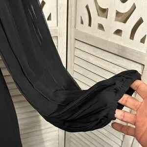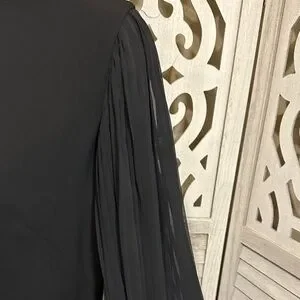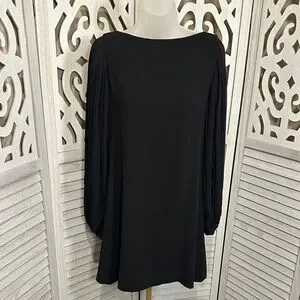 Elegant black fully lined midi dress by White House Black Market. Boat neckline with long pleated sleeves. Smooth A-line body for a flattering drape. Versatile for evening or work events. Preloved approximate measurements: 19” pit to pit. Length: 33” box 7