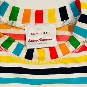 Hanna Andersson Rash Guard Girls 6-7 120 cm Rainbow Stripes Swim Shirt Summer