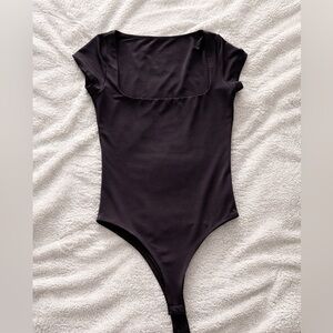 Black Faux Leather Leggings with Dark Brown Top