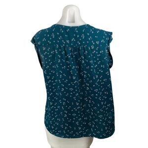Ann Taylor LOFT Women's Teal Blue Floral Ruffle Sleeve Button Blouse Top Size LP
