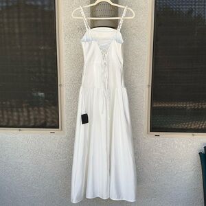 NWT Lulu’s Modern Adoration White Satin Backless Lace-Up Maxi Dress Small