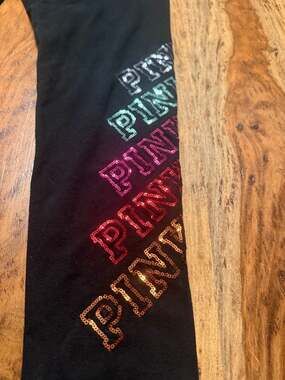 Victoria's Secret PINK Yoga FoldoverLeggings with Rainbow Sequin Logo y2k