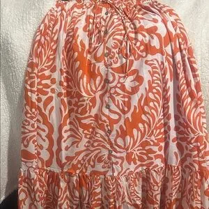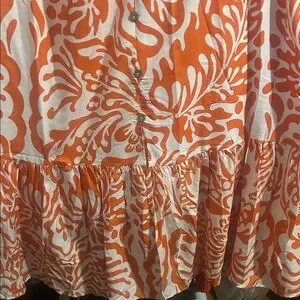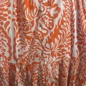 Flowing orange and cream floral-print maxi skirt with a flattering elastic waist. Lightweight tiers create movement for everyday wear. Pairs easily with tanks and sandals for a fresh, seasonal look.nwt girl soul size medium! 100% polyester made in India