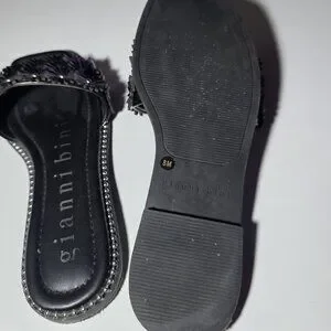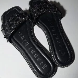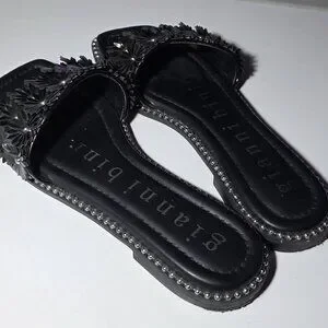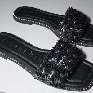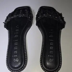 Gianni Bini Women Size 8M Black Floral Applique Studded Slide Sandals