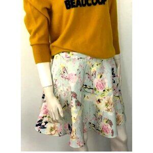 Molly Bracken Skirt Bird print swing/skater print light blue size small