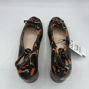 Zara Basic Shoes Womens Size 10 Black Orange Snake Print Block Heel Pumps