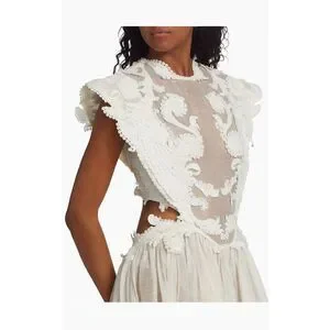 Cut in an asymmetric silhouette, Zimmermann's cap-sleeve Tama gown offers intricate beaded and sequin-embroidery at the semi-sheer bodice. The open-back style is finished with a thigh-high front slit and an elegant trailing hem.