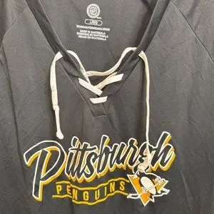 Stylish NHL Pittsburgh Penguins jersey top. Features black and yellow design. Lace-up neckline. Perfect for fans.