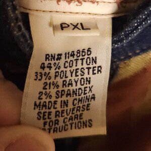 Autumn Salute women’s denim and floral tapestry vest PXL. Gently used condition. Measurements are: 20” from shoulder to hem, and 20 ½" from armpit to armpit.