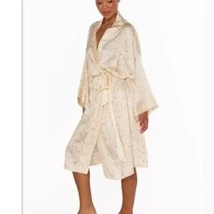Keywords: Show Me Your Mumu, Kimono, Robe, Animal Print, Leopard Print, Cream, Beige, Small, Open Front, Loungewear, Bohemian, Boho, Lightweight, Duster, Cardigan, silky, bath robe, lounge robe