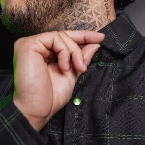 Men’s black and green plaid patterned flannel shirt