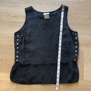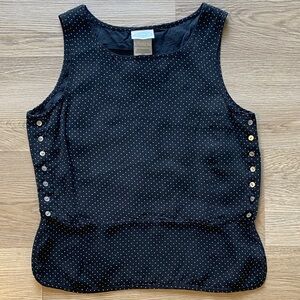 Laura Ashley Silk Polka Dot Tank Top Button Detail Black White Blouse Size 8