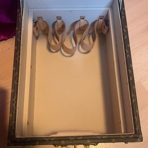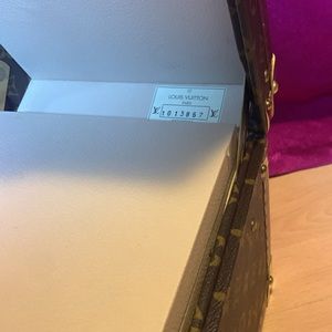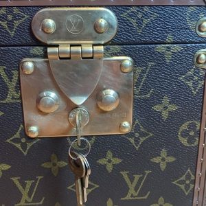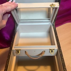 Super rare, cool, train trunk cosmetic case heavy and extremely good quality in absolute fabulous condition one very small mark on the front lid and that is it! extremely clean inside and out and is in new condition minus that one little tiny mark. One corner has the smallest ding the size of a grain of rice