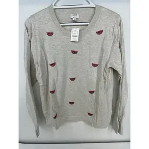 NWT J. Crew Women's Oatmeal Watermelon Teddie Sweater Size Large