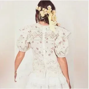 LoveShackFancy Tilda Top in French Cream XS