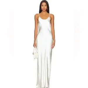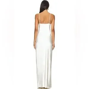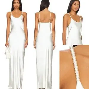 Solid & Striped x Selena Satin Maxi Slip Dress with Beaded Pearl Straps. Brand new, never worn. Retail price: $318. Size XS, fits true to size. Fully lined and made from high-quality fabric that is not see-through. Adjustable Pearl-Embellished Straps. Material