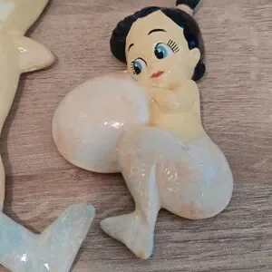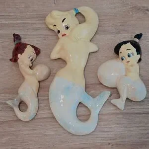 Vtg Mermaids + Bubbles Chalkware Kitsch Wall Hanging Plaques Set of 3 ~ 5"-8"