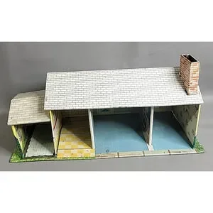 Vintage Tin Litho Ranch Style Metal Dollhouse T Cohn 1950 Furniture Pool READ