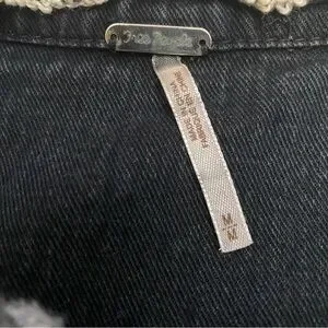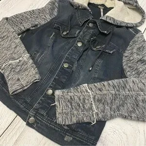 Free People Hooded Denim Knit Jacket in Dark Blue/Black with Gray Medium