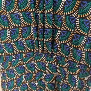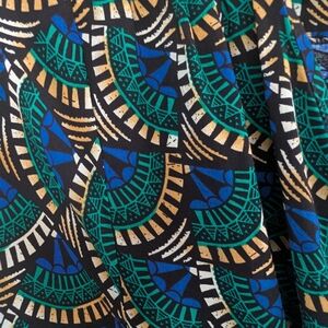 • Color: Black with teal, blue, and tan geometric print