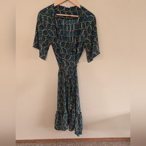Silk and Salt Womens XL Wrap Midi Dress Boho Geometric Print