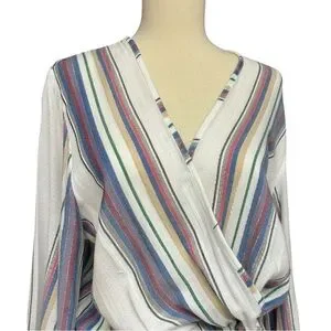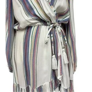Blue Island White Multi Stripe Wrap Dress Women’s Medium Boho Tassel Tie Lightwe