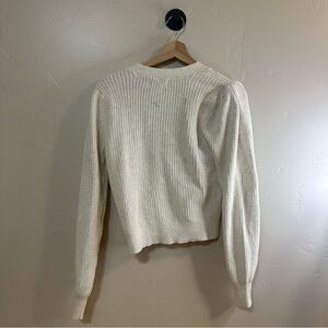 Aerie Cream Chunky Knit Cropped Cardigan NWT Puff Sleeve Size S