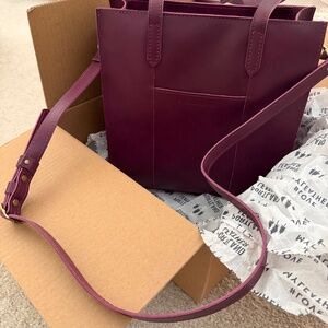 This is a lovely brand-new bag, rich raspberry color, shoulder, or long strap, with a zipper, described color as Larkspur!