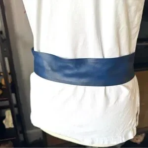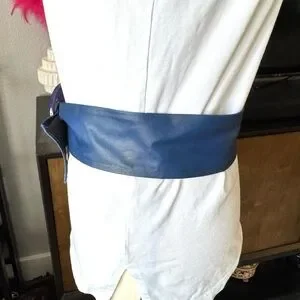 Vintage Blue Leather Belt with Blue Acrylic Buckle