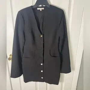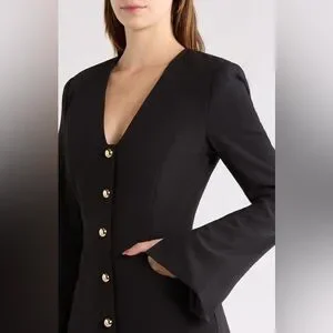 Flared sleeves and polished goldtone buttons amplify the modern glamour of this streamlined minidress.